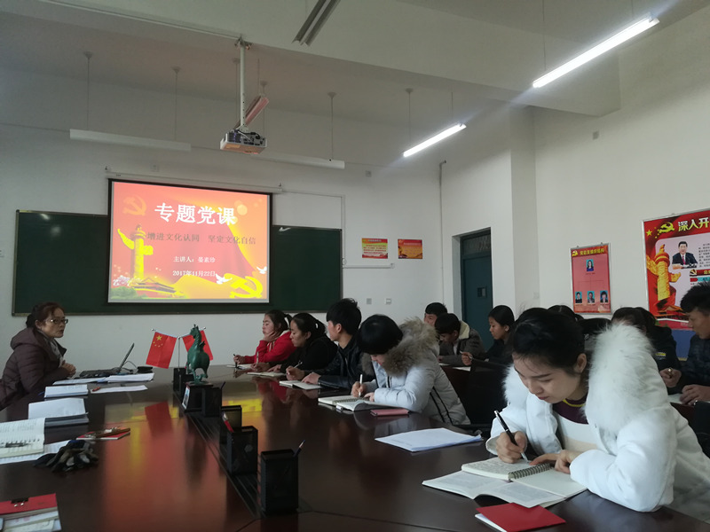 黨課以《增進文化認同 堅定文化自信》為主題,主要從文化認同是文化自信的基礎(chǔ)和源泉、文化認同與文化自信具有價值追求一致性兩個方面進行了講解。