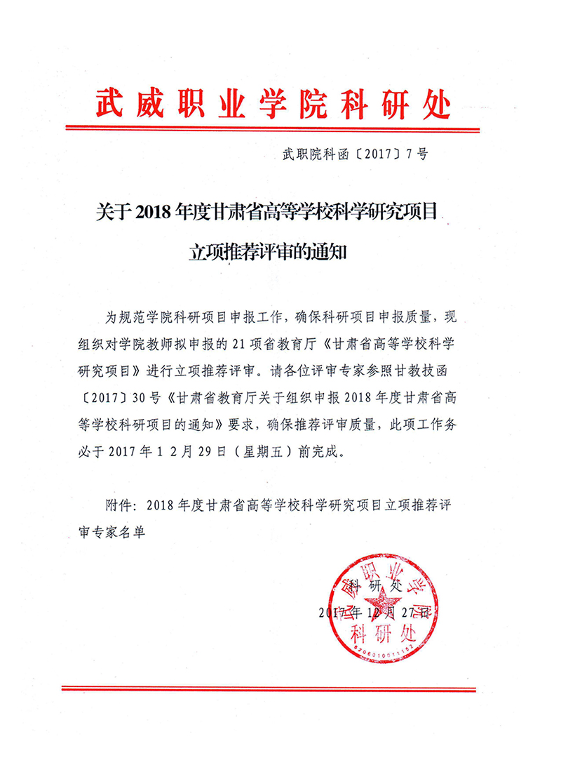 關(guān)于2018年度甘肅省高等學(xué)校科學(xué)研究項(xiàng)目立項(xiàng)推薦評(píng)審的通知