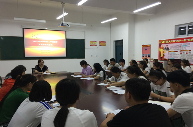為深入了解教學(xué)過(guò)程中存在的問(wèn)題,進(jìn)一步加強(qiáng)教學(xué)質(zhì)量監(jiān)控與評(píng)價(jià),完善“四位一體”教學(xué)質(zhì)量監(jiān)控體系和“五位一體”教學(xué)質(zhì)量評(píng)價(jià)體系,6月21日晚上,系書(shū)記晏素珍同志深入各班開(kāi)展評(píng)教評(píng)學(xué)活動(dòng),并組織各班教學(xué)質(zhì)量信息員及學(xué)生代表召開(kāi)了2017-2018學(xué)年第二學(xué)期的教學(xué)質(zhì)量信息員暨學(xué)生代表大會(huì)。