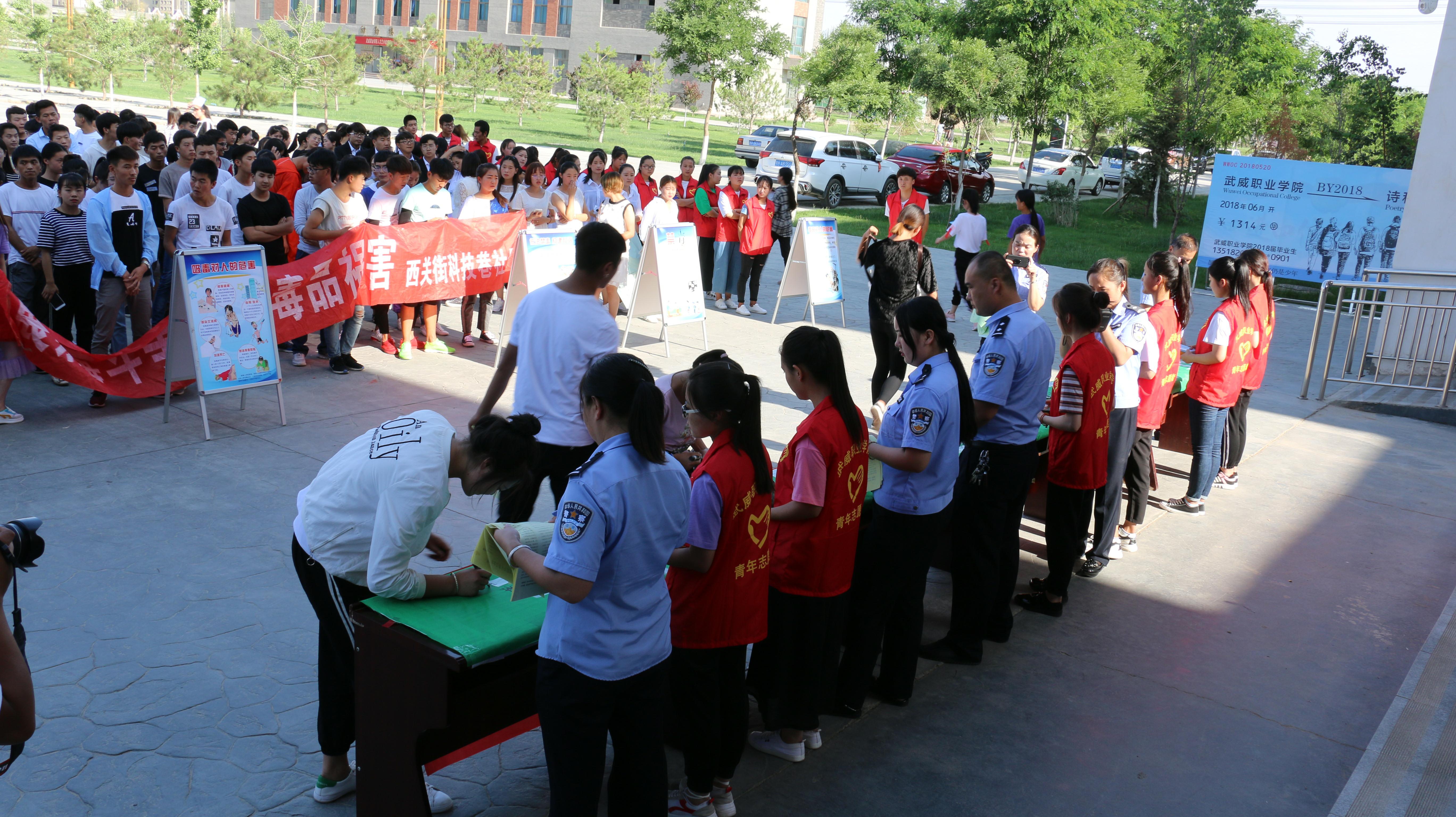 6月26日上午,學院組織50多名禁毒志愿者參加了全市“6.26”國際禁毒日大型主題宣傳活動。下午,學院相關(guān)部門聯(lián)合轄區(qū)派出所在大學生活動中心前舉行了“6.26”國際禁毒日主題宣傳活動。