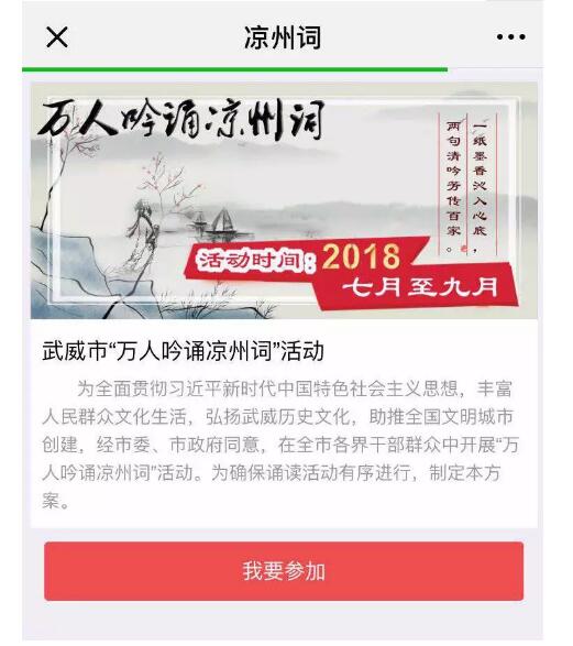 參與武威市“萬人吟誦涼州詞”網(wǎng)絡(luò)誦讀活動(dòng)主要有以下三個(gè)步驟: