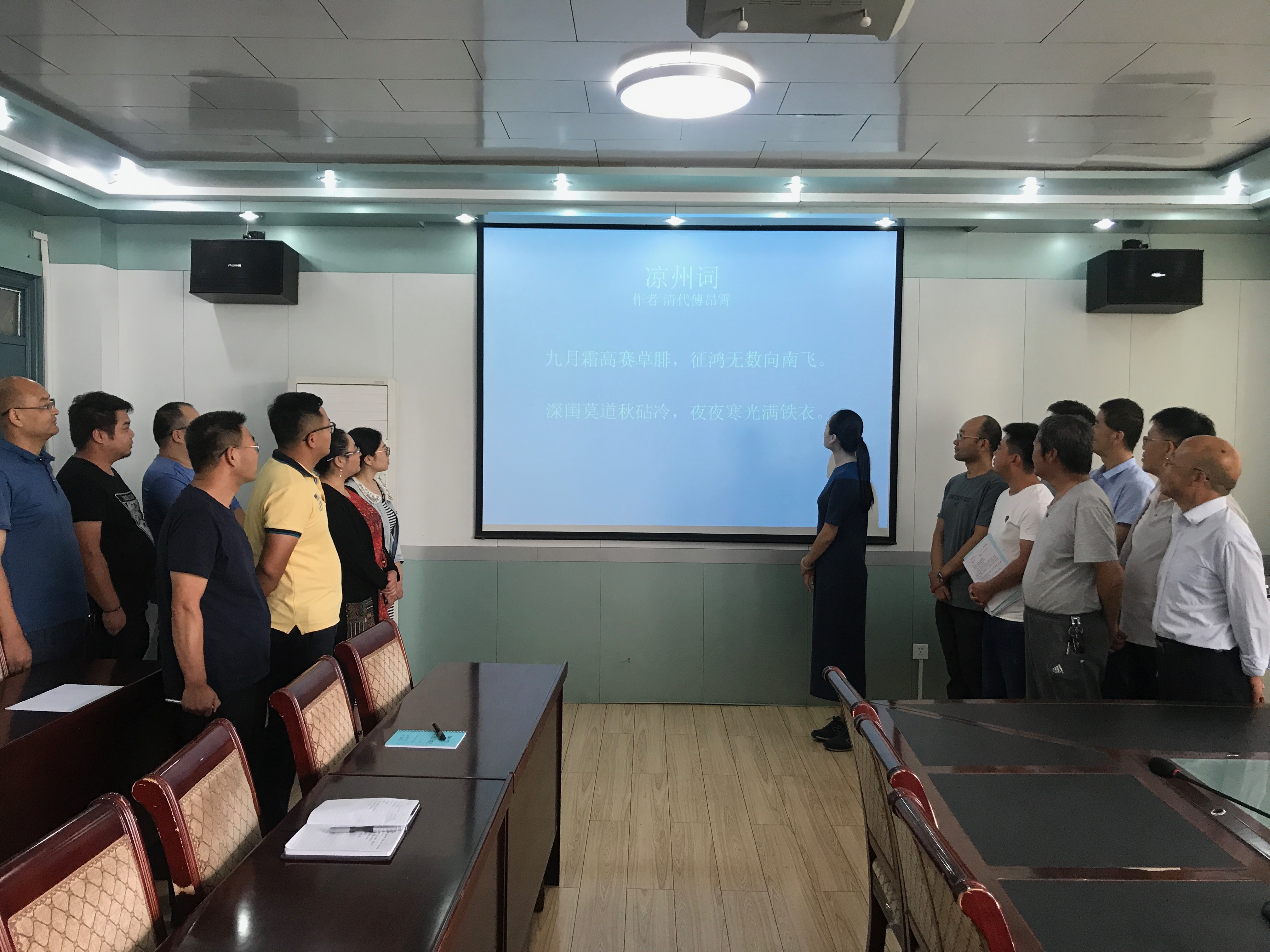 ? ? 2018年8月27日下午,建筑工程系全體教師,在博學樓會議室進行了“萬人吟誦涼州詞“活動。誦讀內(nèi)容為漢唐以來的經(jīng)典涼州詞,伴隨著悠揚的旋律,全體教師在張曦老師的領(lǐng)誦下,吟誦了經(jīng)典涼州詞句"彎彎月出掛城頭,城頭月出照涼州。涼州七里十萬家,胡人半解彈琵琶。"等。