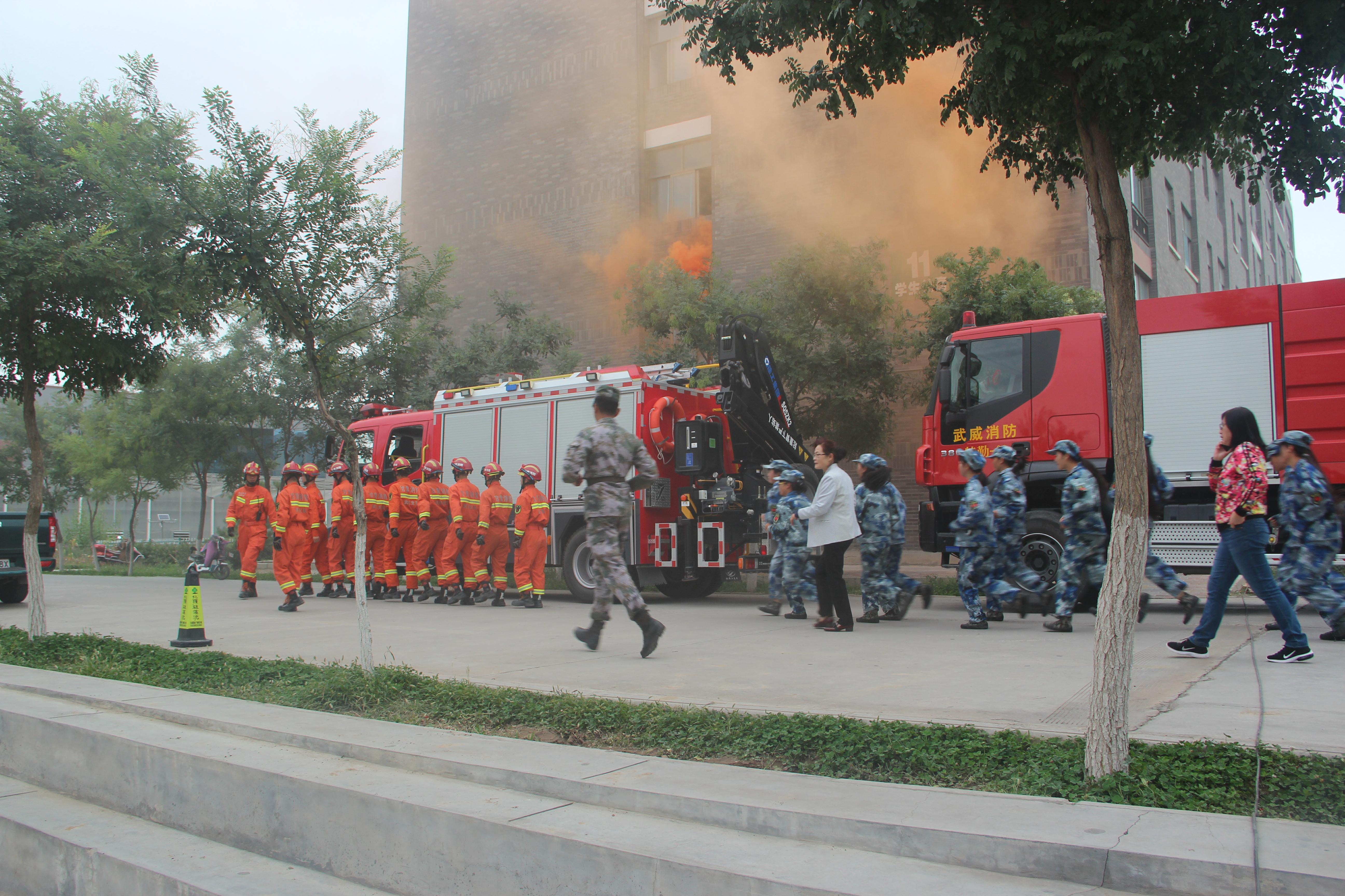 為進(jìn)一步加強(qiáng)校園安全工作,增強(qiáng)師生的消防安全意識(shí),提高師生抵御火災(zāi)和應(yīng)對(duì)緊急突發(fā)事件的能力,9月13日上午,學(xué)院聯(lián)合武威市公安消防支隊(duì)舉行了2018年秋季消防應(yīng)急疏散演練。學(xué)院副院長(zhǎng)王永緒及相關(guān)部門(mén)、單位負(fù)責(zé)同志現(xiàn)場(chǎng)觀摩,約4000名2018級(jí)新生、學(xué)生管理工作人員、軍訓(xùn)教官、食堂從業(yè)人員參加了演練?。