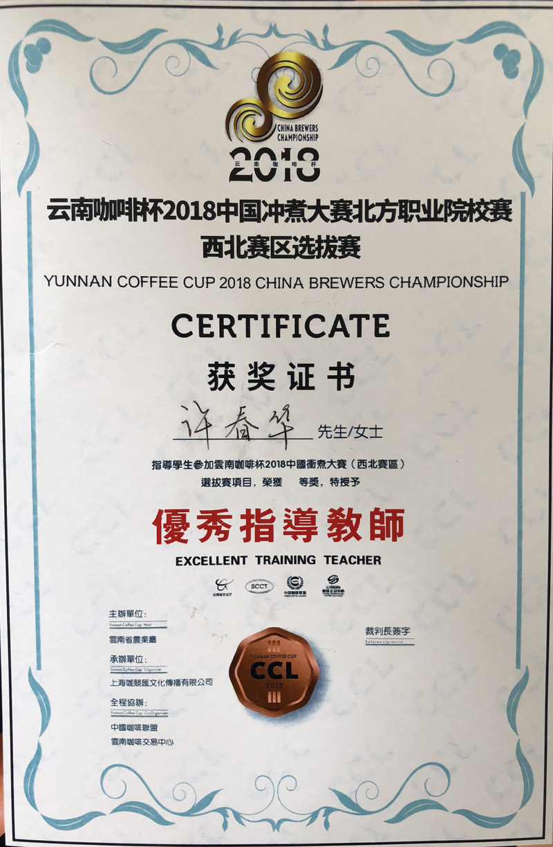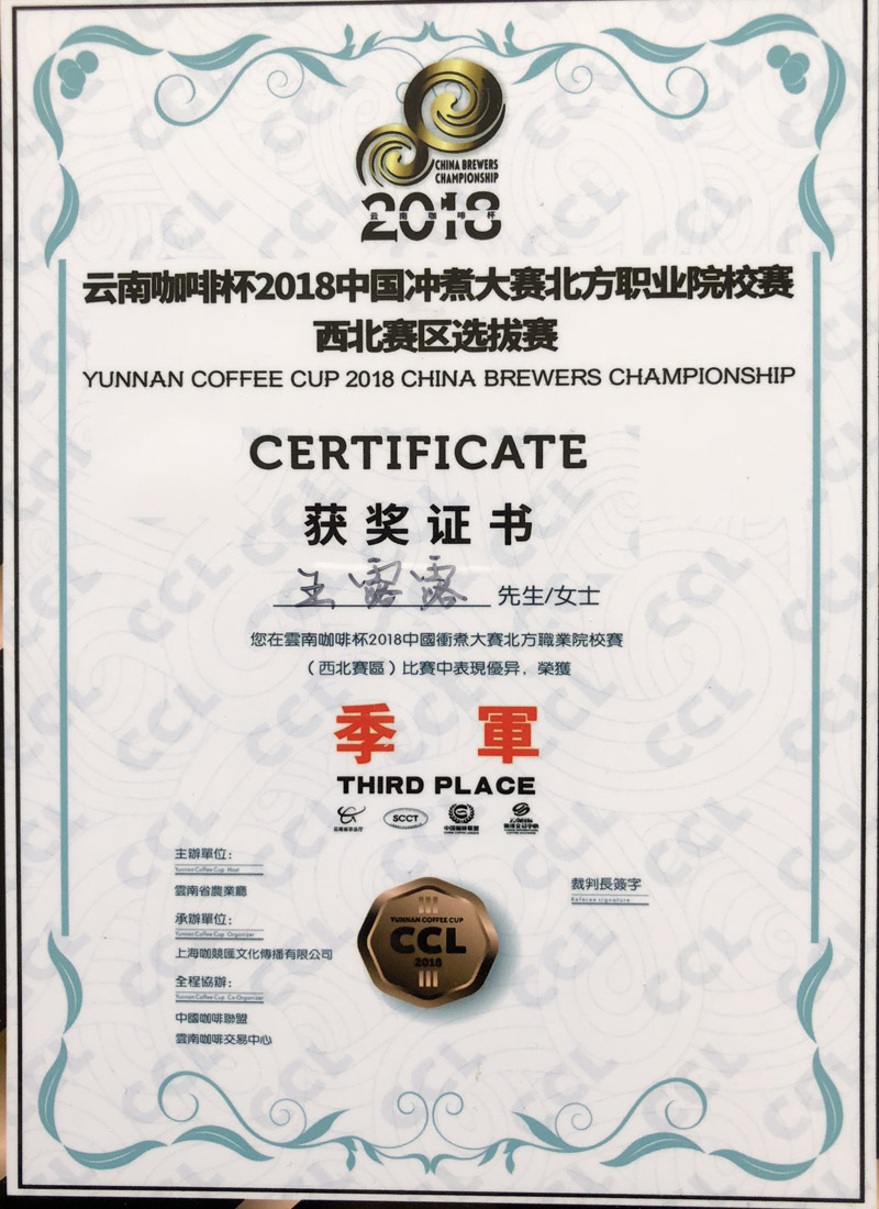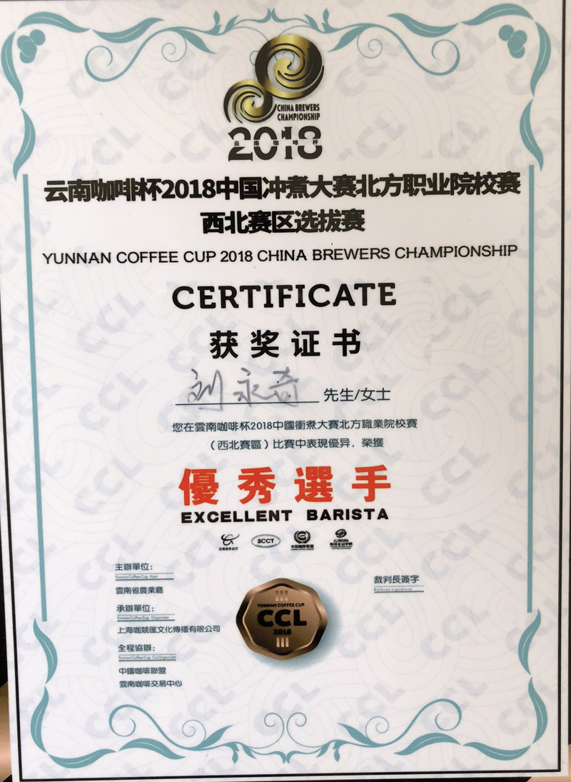 我院學(xué)生榮獲“云南咖啡杯2018中國沖煮大賽北方職業(yè)院校賽西北賽區(qū)選拔賽”季軍