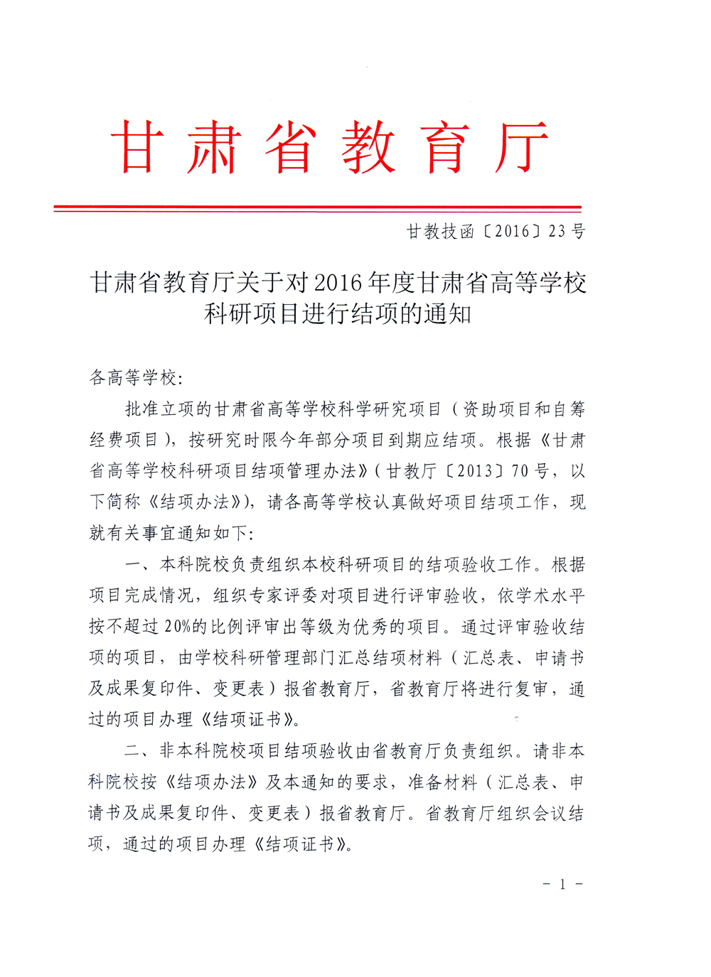 轉(zhuǎn)發(fā)甘肅省教育廳《關(guān)于2016年度甘肅省高等學(xué)校科研項目結(jié)項的通知》