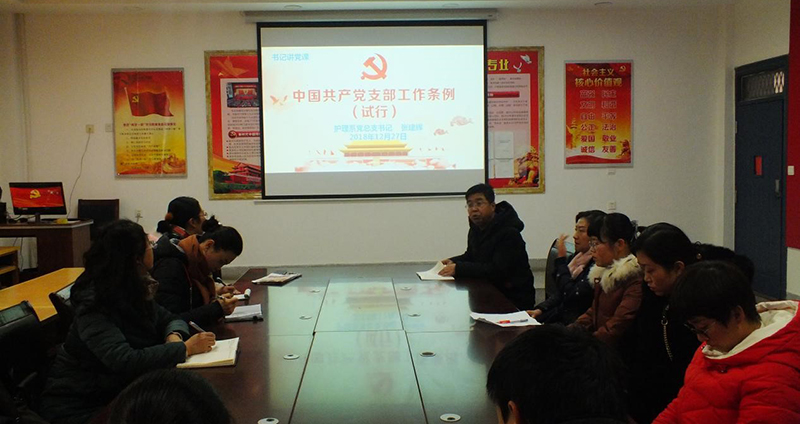 為進(jìn)一步加強(qiáng)黨支部標(biāo)準(zhǔn)化建設(shè), 12月27日,護(hù)理系黨總支在明遠(yuǎn)樓103黨員活動(dòng)室開展學(xué)習(xí)活動(dòng),護(hù)理系黨總支書記張建輝以《中國共產(chǎn)黨支部工作條例(試行)》為題,為參會(huì)黨員們進(jìn)行專題黨課輔導(dǎo),促進(jìn)全體黨員對黨建工作的認(rèn)識(shí)學(xué)習(xí)。