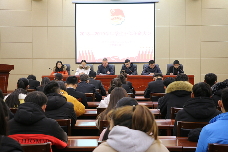 12月28日下午,院團委在行樹樓報告廳舉行2018-2019學年團委學生干部任命大會,學生工作處處長王守云出席,院團委全體干部、受聘學生干部和各系學生干部代表共120人參加大會。