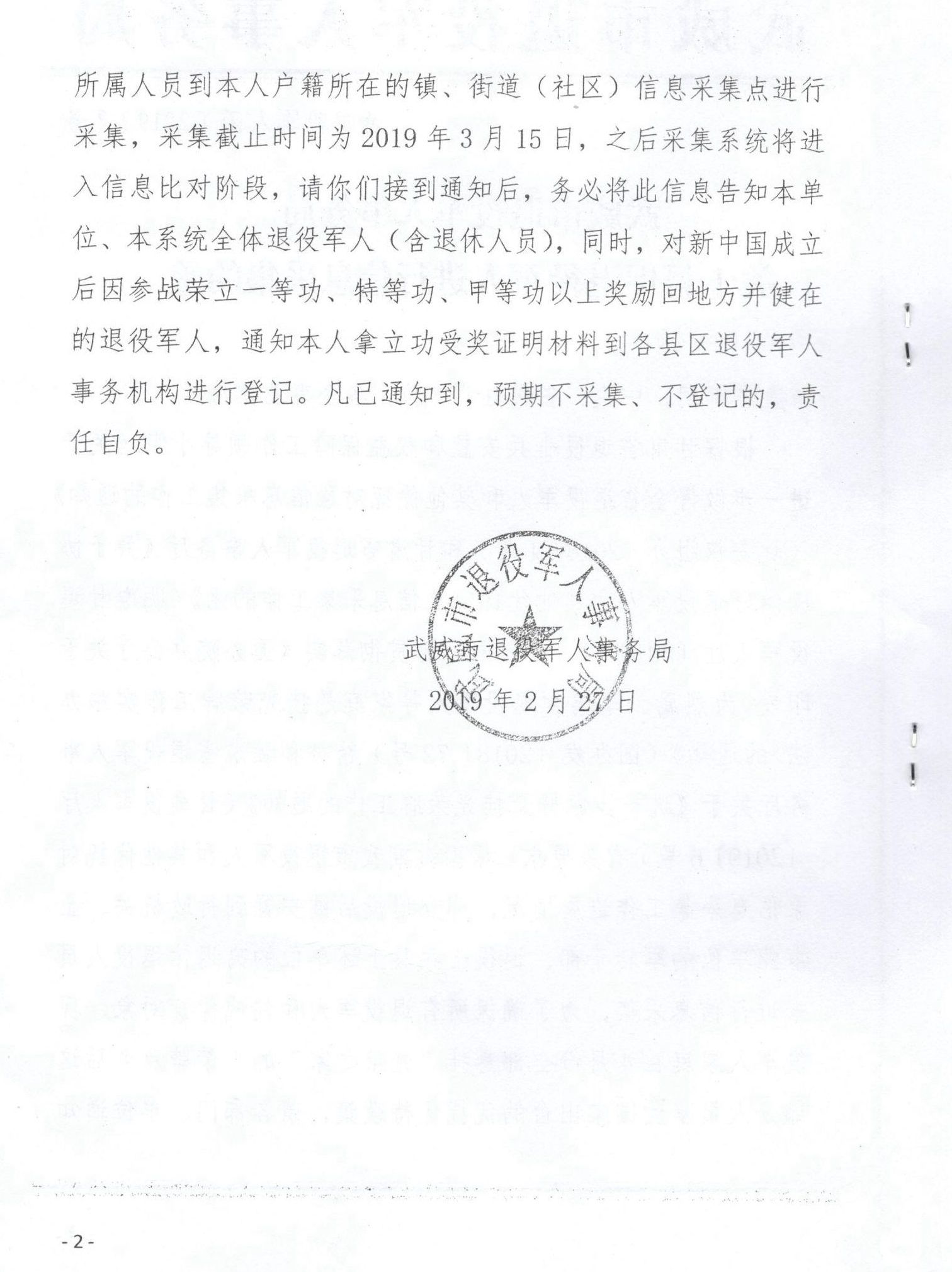 <轉發(fā)>武威市退役軍人事務局關于督促退役軍人進行信息采集的函