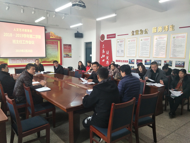 2月26日,人文藝術教育系全體班主任和學生工作管理人員在勵勤樓209會議室,召開新學期學生管理工作會議,會議由系黨總支書記胡靜峰同志主持,系副主任李欣做具體工作安排。