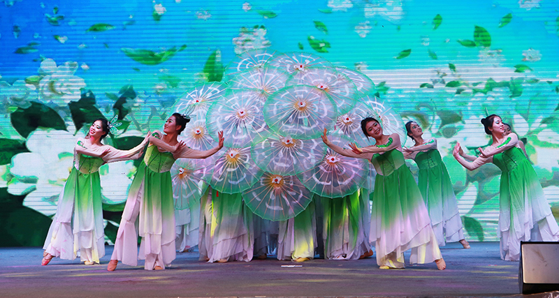 學(xué)院大學(xué)生藝術(shù)團(tuán)推送的節(jié)目詩(shī)朗誦《向祖國(guó)報(bào)告》和舞蹈《茉莉花開》參加了文藝匯演?!断蜃鎳?guó)報(bào)告》表現(xiàn)了我院青年昂揚(yáng)向上的風(fēng)采,表達(dá)了新時(shí)代青年不忘初心,繼往開來(lái),為實(shí)現(xiàn)中國(guó)夢(mèng)而奮斗的青春理想和堅(jiān)定信念。魯芬霞老師指導(dǎo)的《茉莉花開》,姑娘們靈動(dòng)的身姿傾情獻(xiàn)舞,整個(gè)畫面美輪美奐,展現(xiàn)了中國(guó)舞蹈的獨(dú)特魅力,得到了觀眾的一直好評(píng)。