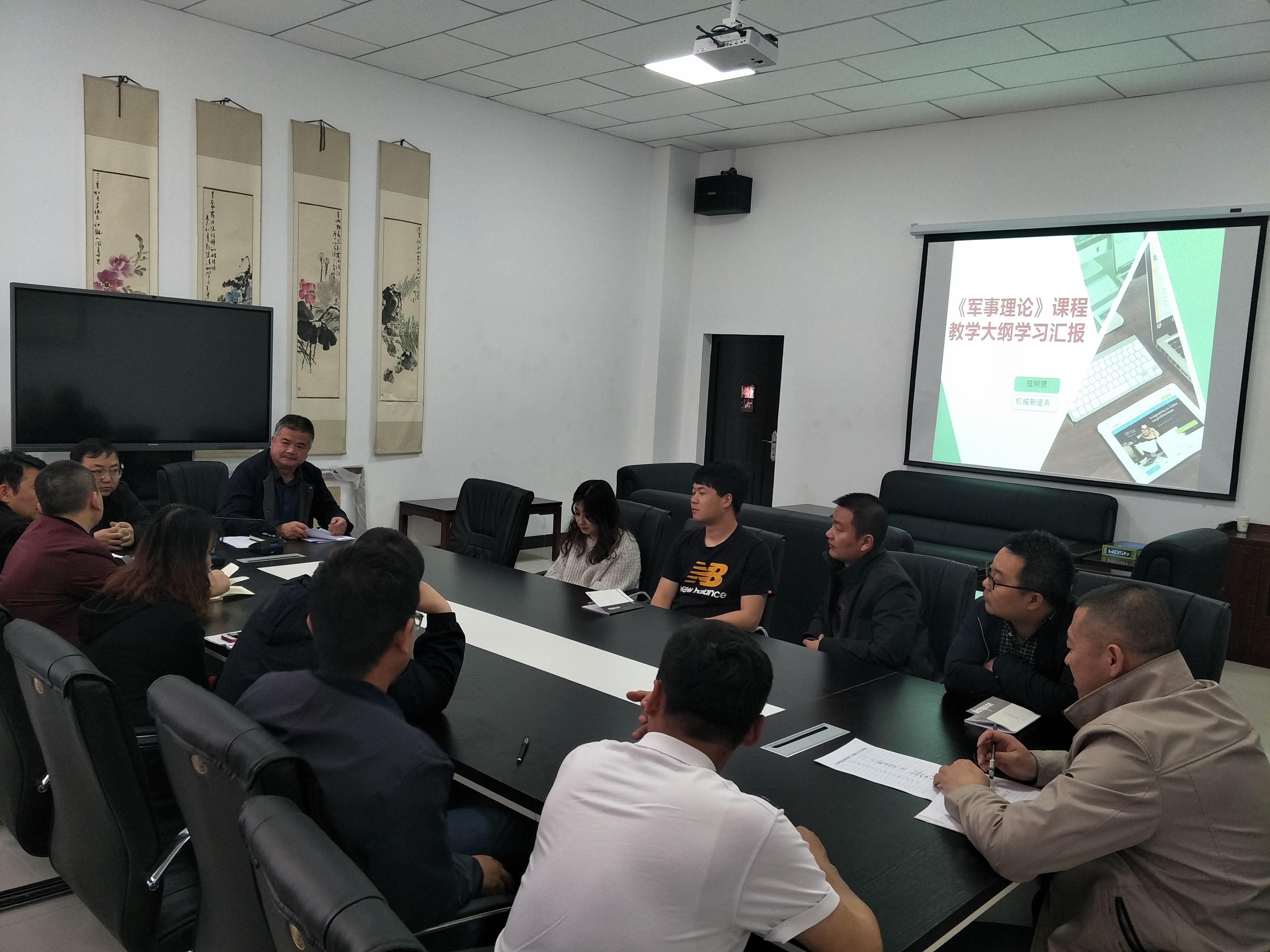 在會(huì)上,王守云傳達(dá)了甘肅省教育廳、甘肅省軍區(qū)戰(zhàn)備建設(shè)局轉(zhuǎn)發(fā)教育部、中央軍委國(guó)防動(dòng)員部印發(fā)《普通高等學(xué)校軍事課教學(xué)大綱》的通知精神。寇明赟老師圍繞新《大綱》制定的背景特點(diǎn)、主要內(nèi)容、亟需把握的主要問題等,進(jìn)行報(bào)告交流。