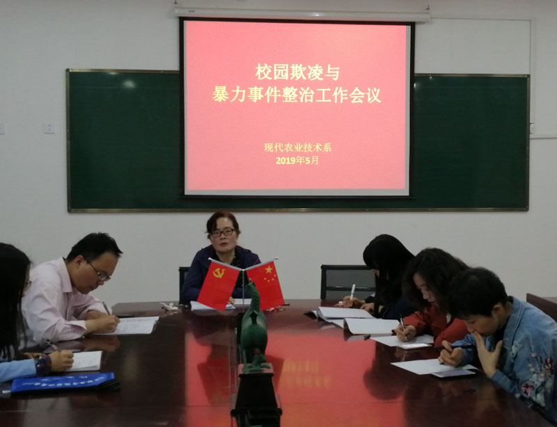 5月17日,現(xiàn)代農(nóng)業(yè)技術(shù)系召開“校園欺凌與暴力事件”整治工作會議,會議由系黨總支書記晏素珍通知主持,全體班主任及輔導員參加了會議。