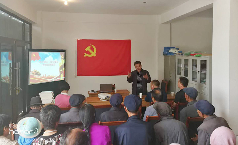 為做好抓黨建促脫貧攻堅(jiān)和加強(qiáng)基層黨組織建設(shè),6月14日,學(xué)院領(lǐng)導(dǎo)、幫扶干部來(lái)到對(duì)口幫扶的移民點(diǎn)蘆草溝村、尚家臺(tái)村村委會(huì)為村民黨員講黨課,為蘆草溝村、尚家臺(tái)村黨組織、駐村工作隊(duì)、村民黨員贈(zèng)送黨建書籍和掃黑除惡知識(shí)手冊(cè)。