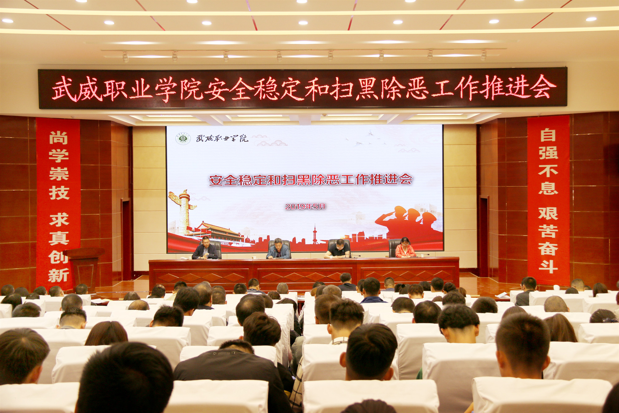 5月27日下午,學(xué)院安全穩(wěn)定和掃黑除惡工作推進(jìn)會在大學(xué)生活動中心菁英廳召開,黨委書記、院長趙明,紀(jì)委書記張富國,副院長王永緒、田迎春出席會議,各部門、單位負(fù)責(zé)人、安全信息員、輔導(dǎo)員、班主任、團(tuán)學(xué)干部參加了會議。會議由趙明主持。? ? ? ? ? ?趙明指出,掃黑除惡專項斗爭是黨中央做出的重大部署,是事關(guān)人心向背,涉及群眾根本利益的重大舉措,對于黨的政權(quán)穩(wěn)固和國家的長治久安具有重要意義。