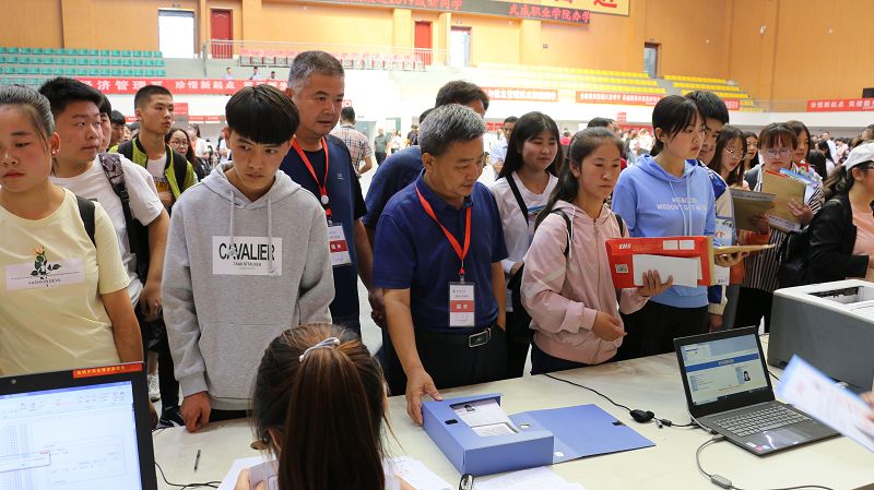 學(xué)院安排專(zhuān)車(chē)前往武威火車(chē)站、汽車(chē)站,為新生及家長(zhǎng)提供全天候接站服務(wù),并為送行家長(zhǎng)專(zhuān)設(shè)了休息區(qū)。安保人員指揮車(chē)輛有序停放,保障安全有序的校園環(huán)境。工作人員引導(dǎo)新生辦理入校手續(xù),報(bào)到、繳費(fèi)、入班、物品發(fā)放等各個(gè)環(huán)節(jié)有條不紊、高效暢通。體育館的電子屏上不斷播放學(xué)院宣傳片、大型公益短片,增強(qiáng)了新生及家長(zhǎng)對(duì)學(xué)院的了解、認(rèn)可和熱愛(ài)。為幫助家庭經(jīng)濟(jì)困難學(xué)生順利入學(xué),學(xué)院還設(shè)立了“綠色通道”服務(wù)點(diǎn),為家庭經(jīng)濟(jì)困難學(xué)生辦理緩交(減免)學(xué)費(fèi)和生源地信用助學(xué)貸款登記手續(xù)。