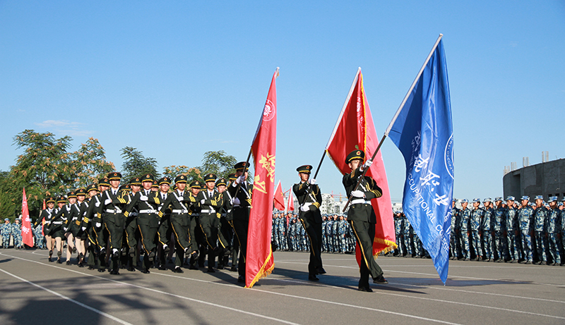在軍訓總結大會上,學院紀委書記張富國同志宣布了2019級新生軍訓工作先進集體、先進個人、軍訓標兵名單。學院領導為軍訓工作先進集體、先進個人、軍訓標兵代表頒獎。學院黨委書記、院長、軍訓團政委趙明同志代表學院向關心這次軍訓的中國人民解放軍某部軍訓隊致以崇高的敬意,向14天來辛勤奮戰(zhàn)在訓練一線的55位教官表示衷心的感謝,并贈送錦旗。向堅守在訓練現(xiàn)場的各系輔導員、班主任致以誠摯的問候,向不怕吃苦、頑強拼搏、圓滿完成軍訓任務的同學們表示熱烈的祝賀!