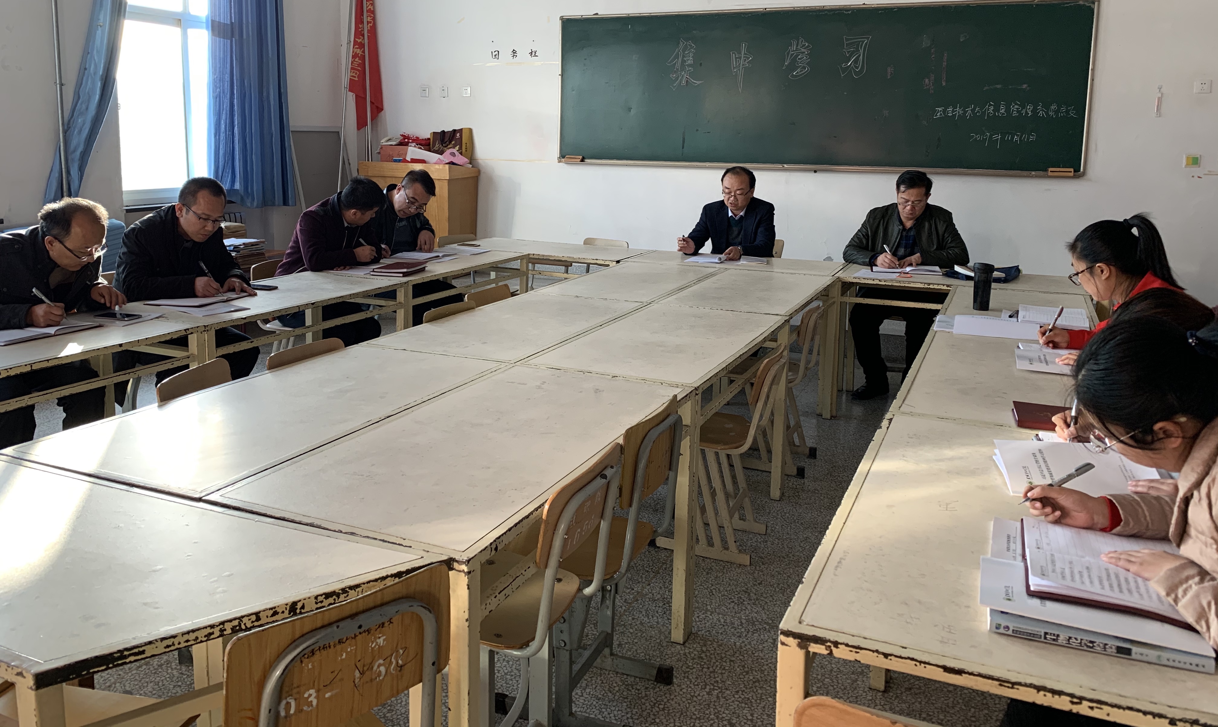 11月11日下午,醫(yī)學(xué)技術(shù)學(xué)院組織全體黨員在明遠(yuǎn)樓416會(huì)議室集中學(xué)習(xí)黨的十九屆四中全會(huì)精神。邀請聯(lián)系黨總支的黨委委員、副院長張開禮參加學(xué)習(xí)并指導(dǎo),系黨總支書記黃文源主持會(huì)議。