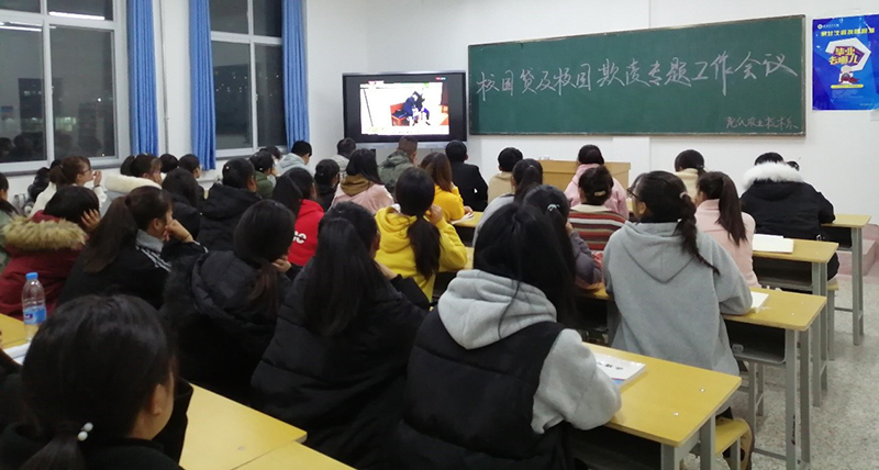 會議重點學習關(guān)于校園貸典型案例、視頻資料,普及法律知識,增強學生金融、網(wǎng)絡(luò)安全防范意識;介紹有關(guān)校園欺凌、校園暴力的常識和造成的危害,增強學生的法制觀念。