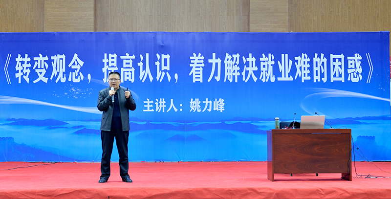 為貫徹2020屆全國普通高校畢業(yè)生就業(yè)創(chuàng)業(yè)工作網(wǎng)絡(luò)視頻會(huì)議精神,學(xué)院以習(xí)近平新時(shí)代中國特色社會(huì)主義思想為指導(dǎo),深入落實(shí)黨中央、國務(wù)院關(guān)于促進(jìn)高校畢業(yè)生就業(yè)創(chuàng)業(yè)的一系列重大決策部署,把畢業(yè)生就業(yè)工作擺在最突出位置,確保畢業(yè)生就業(yè)大局穩(wěn)定。12月14日上午,學(xué)院組織2020屆畢業(yè)生,在體育館參加了題為《轉(zhuǎn)變觀念,提高認(rèn)識(shí),著力解決就業(yè)難得困惑》的專家講座,引導(dǎo)畢業(yè)生轉(zhuǎn)變觀念、積極就業(yè)。講座由省人社廳人力資源市場(chǎng)檔案管理部部長姚力峰主講,招生就業(yè)處副處長董鵬主持。