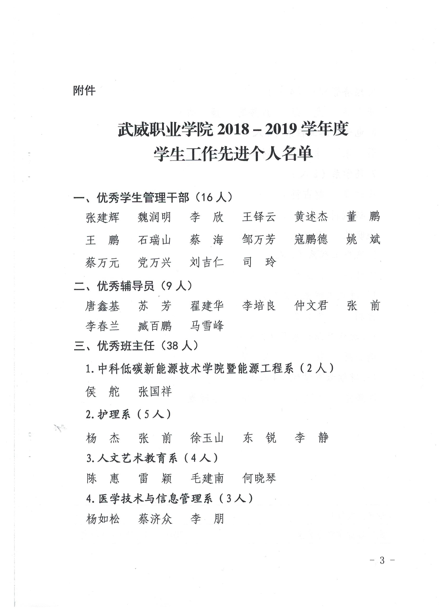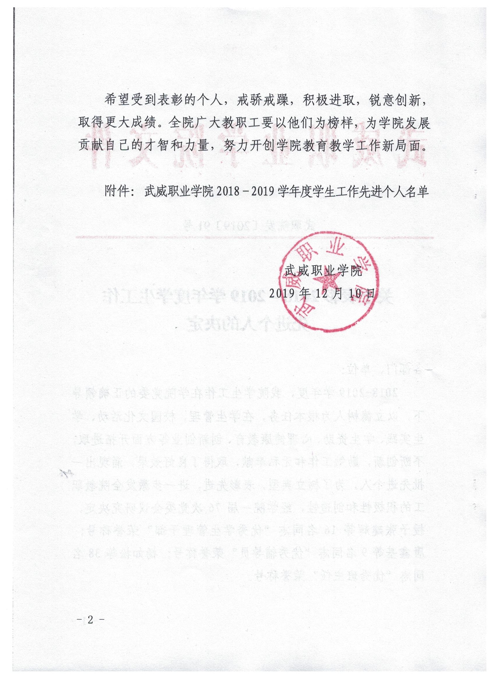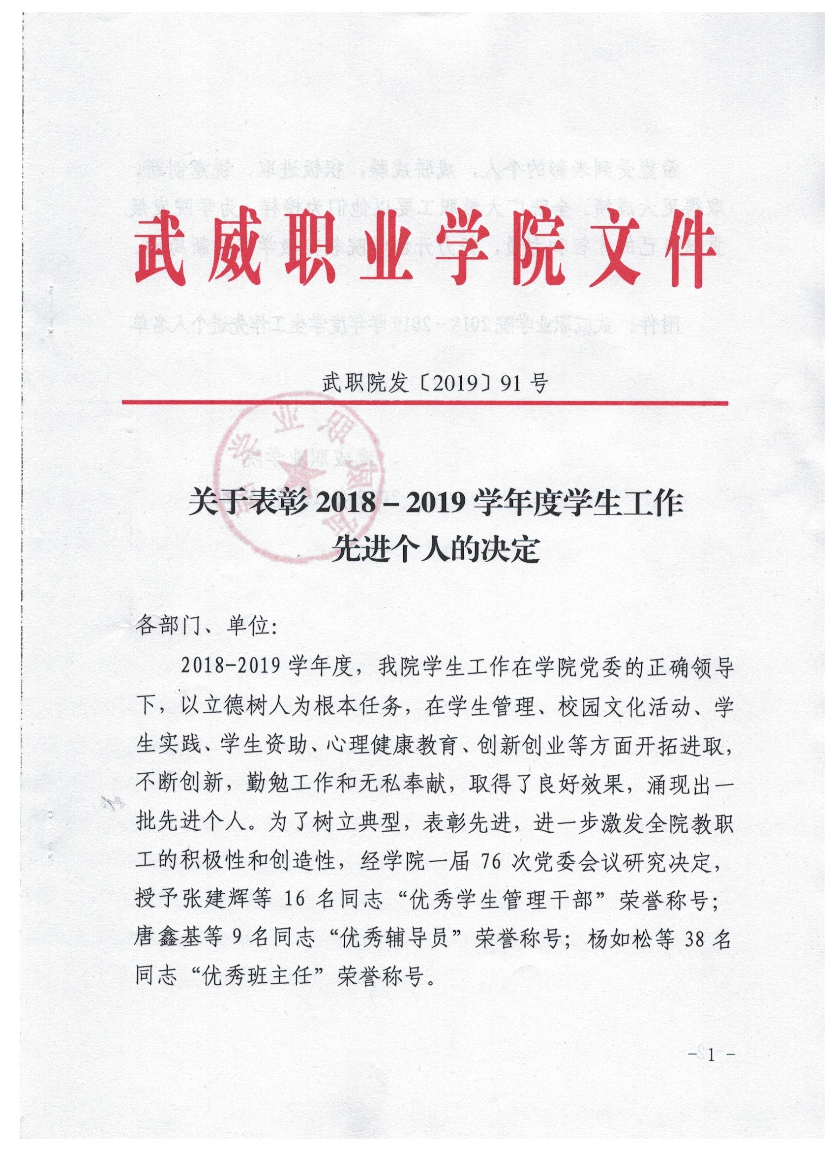 關(guān)于表彰2018-2019學年度學生工作先進個人的決定