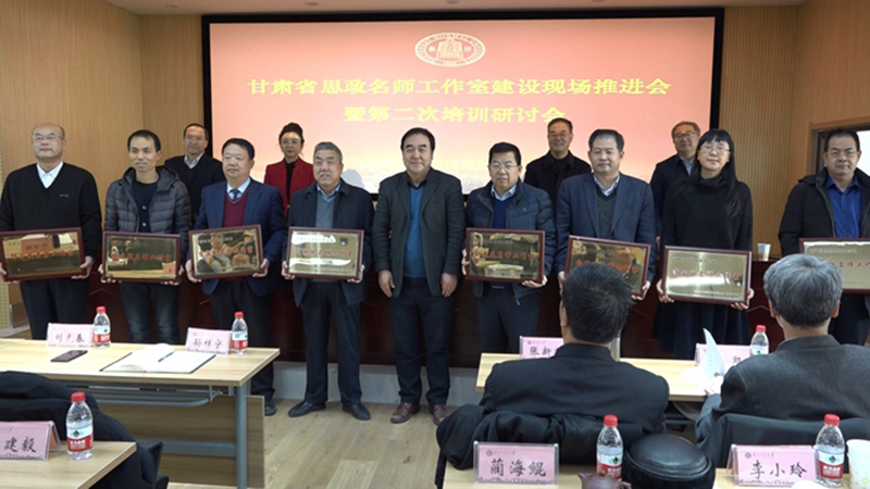 推進(jìn)會上,省委教育工委專職副書記張曉東為甘肅省思想政治理論課劉先春、何繼齡、翟存祥等10個甘肅省思政名師工作室授牌,并為西北師范大學(xué)何繼齡名師工作室揭牌。