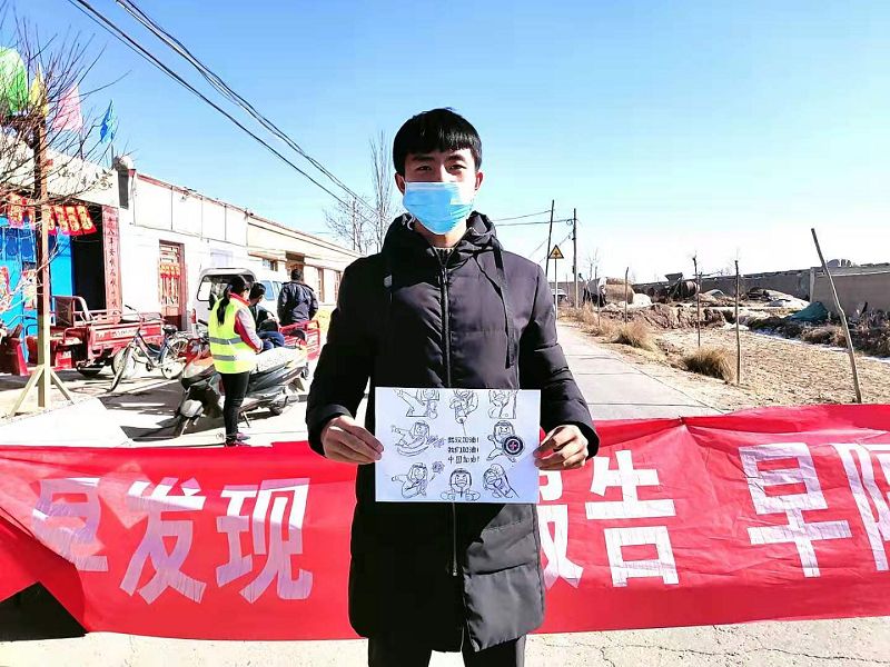 能源工程系2019級應用化工大專班學生王浩楠,在武威市涼州區(qū)發(fā)放鎮(zhèn)新興村疫情防控工作站參加勸導防疫工作,主要在交通道路上對來往人員和車輛進行排查登記,向村民宣傳疫情防護知識,在各隊會議室門口張貼宣傳橫幅,作為一名青年志愿者,為了守護家鄉(xiāng),也為了盡快打贏這場阻擊戰(zhàn),以實際行動踐行共青團員的青春誓言。