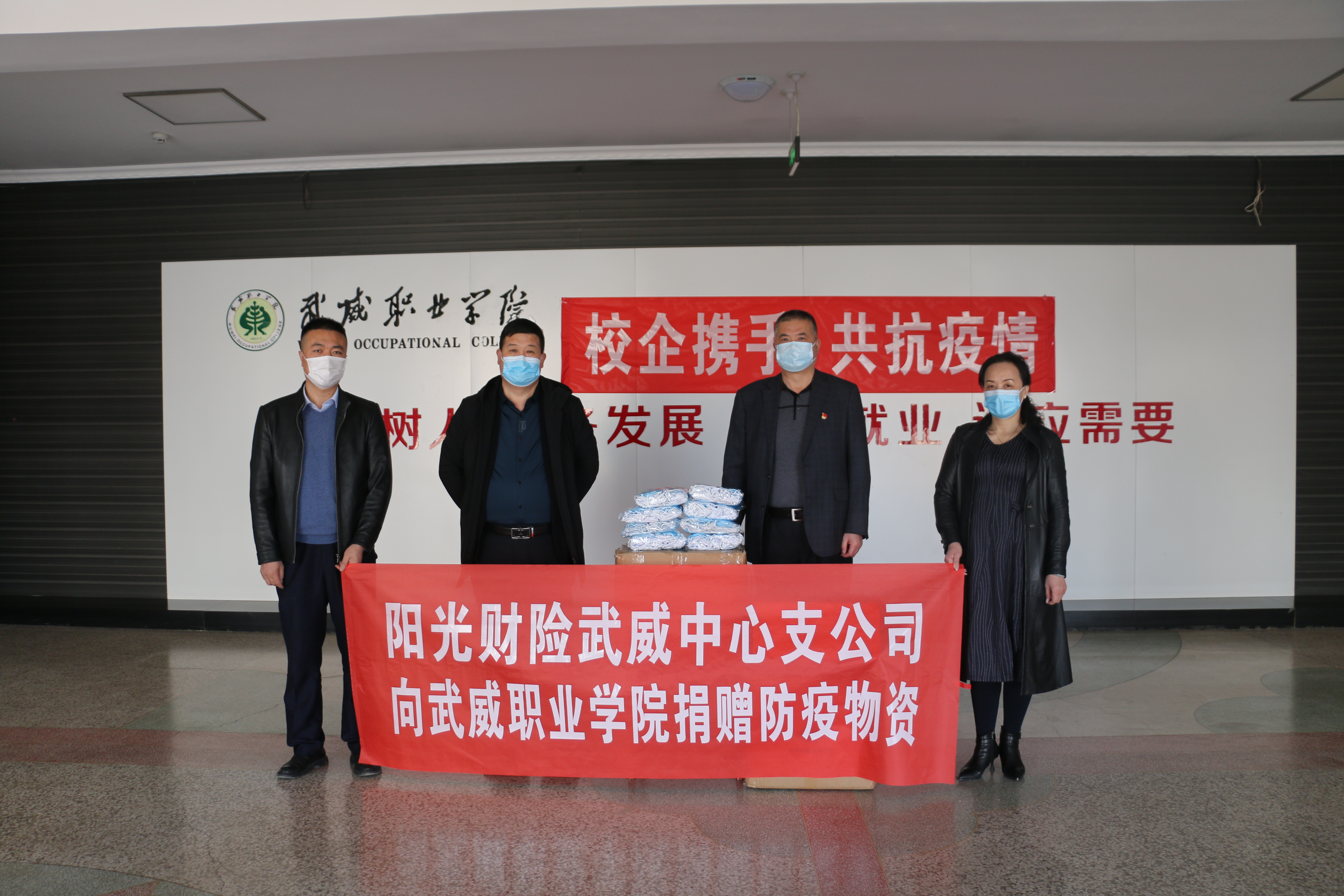 陽(yáng)光財(cái)產(chǎn)保險(xiǎn)股份有限公司武威中心支公司向?qū)W院捐贈(zèng)新冠肺炎疫情物資,捐贈(zèng)一次性醫(yī)用口罩5000個(gè)。