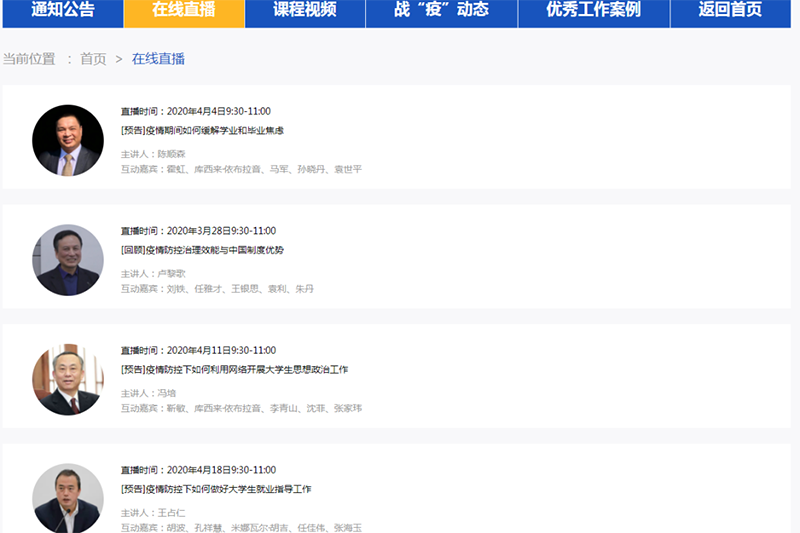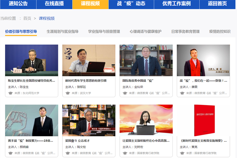 為推進當前教育系統(tǒng)疫情防控和學生思想政治教育工作,由教育部主辦,高校思想政治工作隊伍培訓研修中心承辦的“共抗疫情顯擔當,愛國力行育新人”全國高校輔導員網(wǎng)絡(luò)培訓示范班開班。