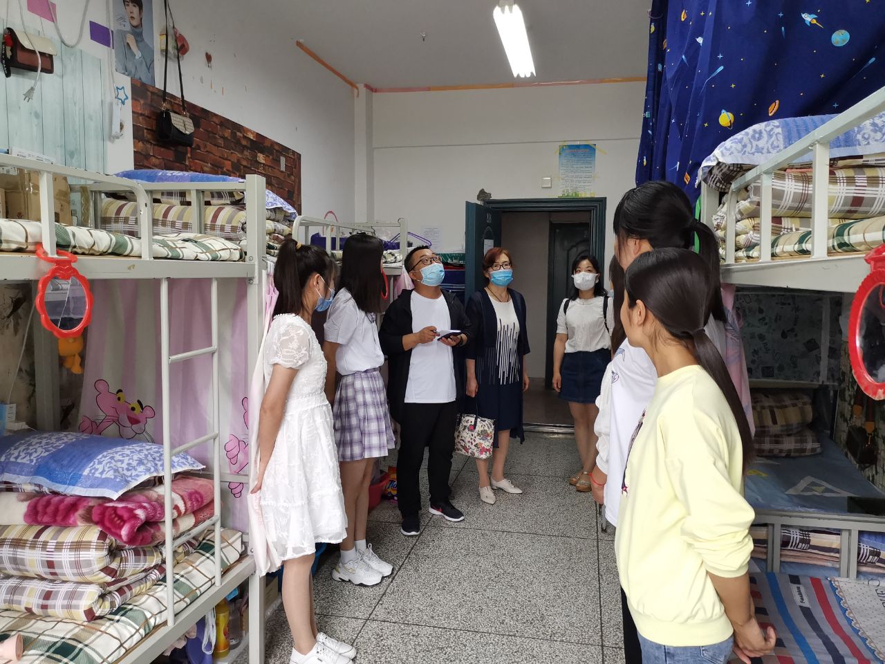 走訪中,晏素珍與學(xué)生親切交流,希望全體學(xué)生一要以積極心態(tài)面對(duì)疫情,做好個(gè)人防護(hù)工作,腳踏實(shí)地,勤奮學(xué)習(xí)。二要注意個(gè)人及公共衛(wèi)生,合理飲食,加強(qiáng)體育鍛煉,增強(qiáng)體質(zhì)。三要嚴(yán)格遵守學(xué)院的各項(xiàng)規(guī)章制度,筑牢安全意識(shí),宿舍內(nèi)不使用大功率電器和存放易燃易爆物品,共同構(gòu)建平安宿舍。