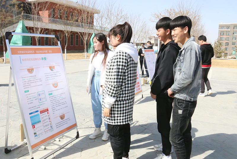 2019年3月21日下午15時(shí),武威職業(yè)學(xué)院開(kāi)展了“信訪舉報(bào)宣傳周”活動(dòng)。市紀(jì)委派駐市教育局紀(jì)檢組車(chē)旭如、學(xué)院紀(jì)委書(shū)記張富國(guó)參加了活動(dòng)。