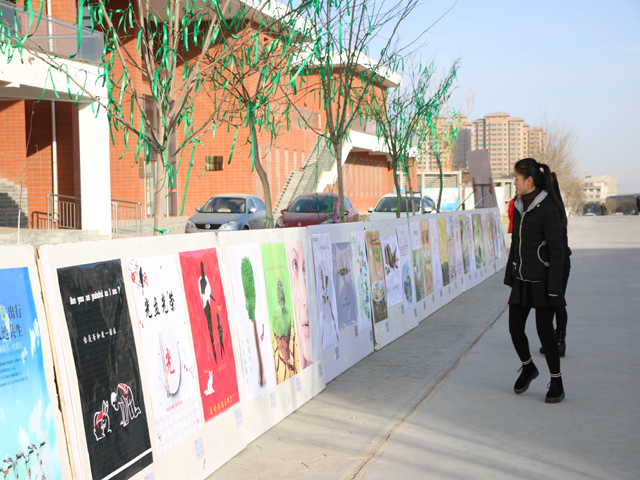 12月28日,人文藝術(shù)教育系“伸一雙手 護(hù)一片綠”主題公益海報(bào)展在大學(xué)生活動中心前廣場舉行。學(xué)院宣傳統(tǒng)戰(zhàn)部部長王繼林,人文藝術(shù)教育系黨總支書記胡靜峰出席開展儀式,美術(shù)教研室主任董有國及部分師生參加了展覽。