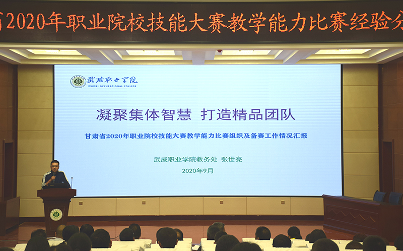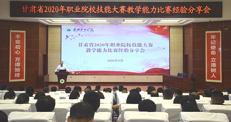 2020年9月2日上午,學(xué)院在菁英廳舉辦甘肅省2020年職業(yè)院校技能大賽教學(xué)能力比賽經(jīng)驗分享會,學(xué)院各級參賽隊員、院領(lǐng)導(dǎo)、中層以上管理干部、教學(xué)能力比賽指導(dǎo)組成員以及自愿報名參加分享會人員共210人參加,會議由學(xué)院黨委副書記翟存祥主持。