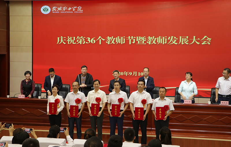 學院領導分別宣讀了《武威職業(yè)學院關于表彰獎勵2020年度優(yōu)秀教師、優(yōu)秀教育工作者的決定》《關于表彰學院2020年“教書育人楷?!鲍@得者的決定》《關于表彰學院2020年“我最喜愛的老師”獲得者的決定》《武威職業(yè)學院關于表彰獎勵語言文字推廣先進個人的決定》和《關于評定2020年院級“教學名師”“教學能手”“教學新秀”的決定》《關于聘任2020年院級專業(yè)(學科)帶頭人的決定》《武威職業(yè)學院關于評定2020年院級骨干教師的決定》。楊存忠教授和學院領導分別為獲獎者頒發(fā)榮譽證書。