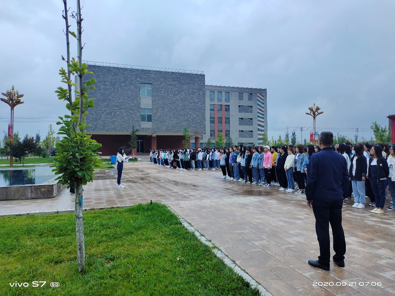 最后,魏潤明以“秋冬季節(jié),加強(qiáng)疫情防護(hù)”為題做了講話。他要求全體師生:一、嚴(yán)格日常管理。提醒學(xué)生早起以增強(qiáng)身體素質(zhì)、健康體魄,要重視自身健康素養(yǎng)和自我防護(hù)能力。二、嚴(yán)格執(zhí)行請銷假制度。各班主任對請假學(xué)生,須認(rèn)真核實(shí)情況,各班同學(xué)應(yīng)嚴(yán)格執(zhí)行請銷假制度。同時,他告誡2018級學(xué)生,抓住有利時機(jī),提前做好“專升本”復(fù)習(xí)工作,為圓滿完成2021屆畢業(yè)生就業(yè)工作,做好準(zhǔn)備。