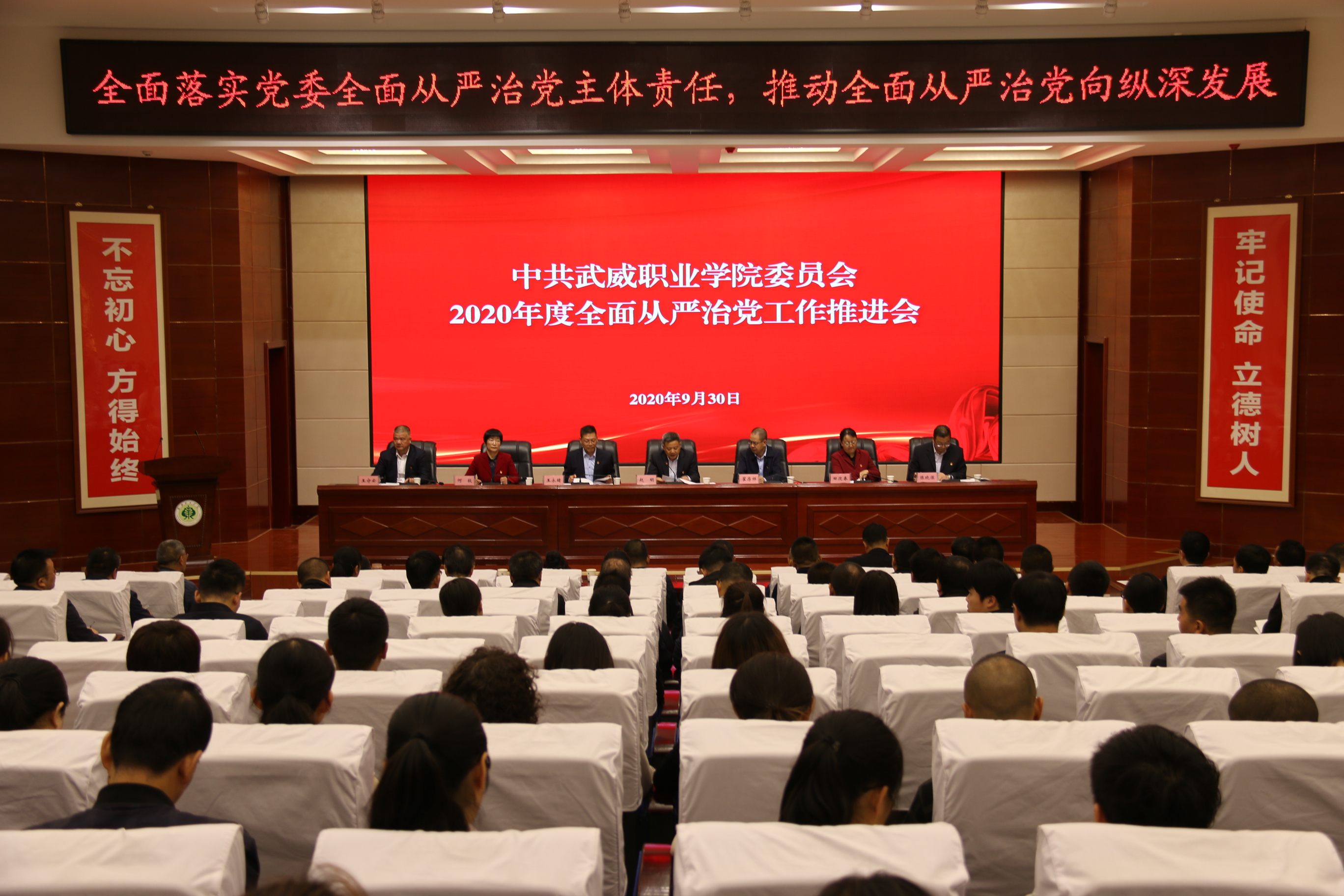 9月30日上午,學院2020年度全面從嚴治黨工作推進會在大學生活動中心菁英廳召開,學院領(lǐng)導班子成員,各基層黨組織書記及支委班子成員、專職組織員,各部門負責人及師生黨員代表共計220人參加了會議。會議由學院黨委書記、院長趙明主持。會議套開了學院2020年下半年宣傳思想工作、意識形態(tài)工作和統(tǒng)戰(zhàn)工作推進會。