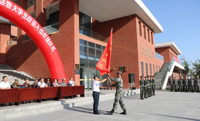 9月4日上午,學(xué)院2019級(jí)新生軍訓(xùn)動(dòng)員大會(huì)暨大學(xué)生應(yīng)征入伍歡送儀式在大學(xué)生活動(dòng)中心廣場(chǎng)舉行。學(xué)院黨委書(shū)記、院長(zhǎng)趙明出席并向軍訓(xùn)團(tuán)授旗,黨委副書(shū)記翟存祥寄語(yǔ)全體新生,院領(lǐng)導(dǎo)張富國(guó)、王永緒、田迎春、何毅、張開(kāi)禮及31666部隊(duì)營(yíng)長(zhǎng)李明出席,承訓(xùn)單位55名教官,學(xué)院各系黨總支書(shū)記、輔導(dǎo)員、新生班班主任,2019年參軍入伍的28名大學(xué)生、2019級(jí)4157名學(xué)生參加了大會(huì)。大會(huì)由副院長(zhǎng)王守云主持。