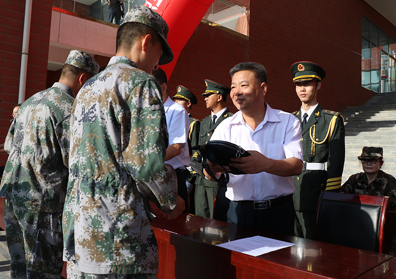 翟存祥代表學(xué)院向軍訓(xùn)教官表示衷心的感謝,祝愿應(yīng)征入伍的同學(xué)們?cè)诓筷?duì)進(jìn)一步譜寫人生華章,并向參加軍訓(xùn)的全體同學(xué)致以親切的問(wèn)候。他指出,舉行大學(xué)生應(yīng)征入伍歡送儀式,就是要鼓勵(lì)大學(xué)生樹(shù)立“天下興亡,匹夫有責(zé)”的國(guó)防教育觀念,軍訓(xùn)旨在培養(yǎng)同學(xué)們的國(guó)防意識(shí)和愛(ài)國(guó)主義精神,培養(yǎng)同學(xué)們的組織紀(jì)律觀念,磨練同學(xué)們意志品德,培育和踐行社會(huì)主義核心價(jià)值觀!他要求參訓(xùn)學(xué)生要堅(jiān)守目標(biāo),做遵紀(jì)守法的優(yōu)秀戰(zhàn)士;要刻苦訓(xùn)練,做軍事訓(xùn)練的優(yōu)秀學(xué)子;要?jiǎng)?lì)志成才,做中國(guó)特色社會(huì)主義合格建設(shè)者和可靠接班人。他希望同學(xué)們牢記習(xí)近平總書(shū)記的殷殷囑托、諄諄教誨,不忘初心、牢記使命,勇于擔(dān)當(dāng)這個(gè)時(shí)代賦予的歷史責(zé)任,樹(shù)立遠(yuǎn)大理想,堅(jiān)持勵(lì)志勤學(xué),在激情奮斗中綻放青春光芒,立志成為中國(guó)特色社會(huì)主義偉大事業(yè)的有用人才。