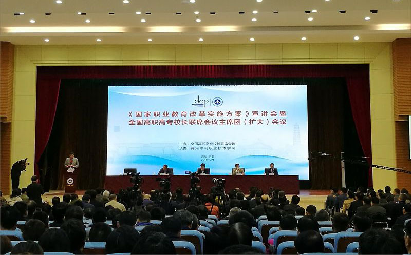 近日,《國(guó)家職業(yè)教育改革實(shí)施方案》宣講會(huì)暨全國(guó)高職高專校長(zhǎng)聯(lián)席會(huì)議主席團(tuán)(擴(kuò)大)會(huì)議在黃河水利職業(yè)技術(shù)學(xué)院召開(kāi)。教育部職業(yè)教育與成人教育司副司長(zhǎng)謝俐出席會(huì)議。學(xué)院黨委書(shū)記、院長(zhǎng)趙明與全國(guó)高職高專校長(zhǎng)聯(lián)席會(huì)議主席團(tuán)成員、全國(guó)高職高專院校負(fù)責(zé)人代表等700余人參加會(huì)議。會(huì)議由全國(guó)高職高專校長(zhǎng)聯(lián)席會(huì)議主席、中國(guó)職業(yè)技術(shù)教育學(xué)會(huì)副會(huì)長(zhǎng)、天津職業(yè)大學(xué)原校長(zhǎng)董剛主持。