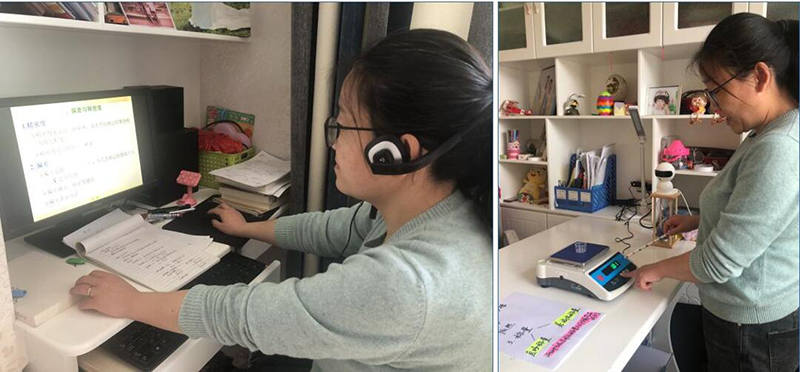 中科低碳新能源學(xué)院積極組織教研活動(dòng)解決專業(yè)課程在線教學(xué)難題。李春蘭老師在《分析化學(xué)》教學(xué)中通過視頻直播為學(xué)生展示低精度電子天平使用過程,為后續(xù)到校實(shí)踐教學(xué)開展打好基礎(chǔ)。
