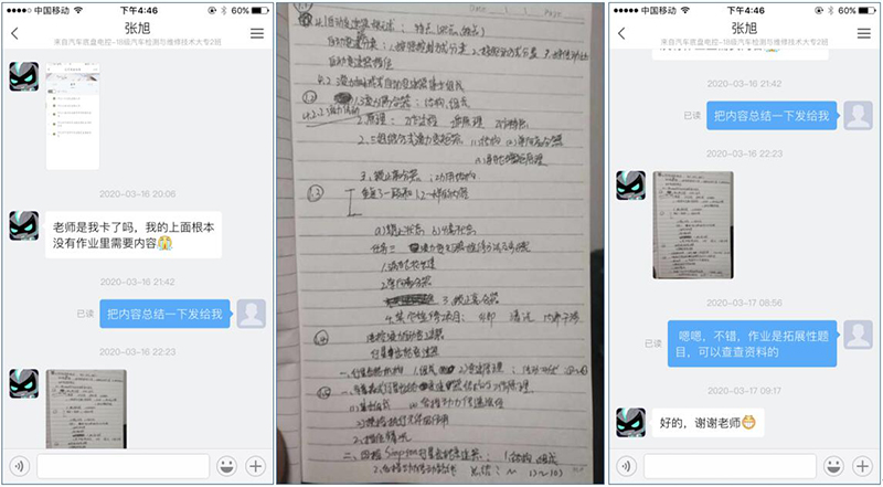 現(xiàn)代農(nóng)業(yè)技術(shù)系和汽車工程系的幾位學(xué)生春節(jié)前外出打工時(shí),因疫情爆發(fā)未能及時(shí)返回,被滯留當(dāng)?shù)亍R咔榫徍秃笃髽I(yè)復(fù)工,學(xué)生為了能按時(shí)參加在線學(xué)習(xí),努力克服了時(shí)間不足、上網(wǎng)不便、網(wǎng)絡(luò)卡頓等諸多問題,白天工作、晚上學(xué)習(xí),刻苦的身影令人動(dòng)容。