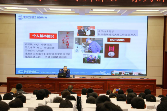 最后,翟存祥教授為胡建民頒發(fā)聘書,特聘請胡建民為武威職業(yè)學(xué)院人才培養(yǎng)技能大師。翟存祥指出,校企合作,相互支持,共同發(fā)展是校企互贏的發(fā)展模式。中科低碳新能源技術(shù)學(xué)院同中科院和蘭鈾公司合作,為同學(xué)們提供了優(yōu)質(zhì)教育資源、更高更好的發(fā)展平臺,技藝精湛的教師團(tuán)隊。希望同學(xué)們珍惜機(jī)遇,學(xué)習(xí)胡大師學(xué)習(xí)中嚴(yán)謹(jǐn)?shù)闹螌W(xué)態(tài)度,實(shí)踐中“斤斤計較”、精益求精的工匠精神,生活中敞開胸懷的人生態(tài)度,成長為優(yōu)秀技能人才。