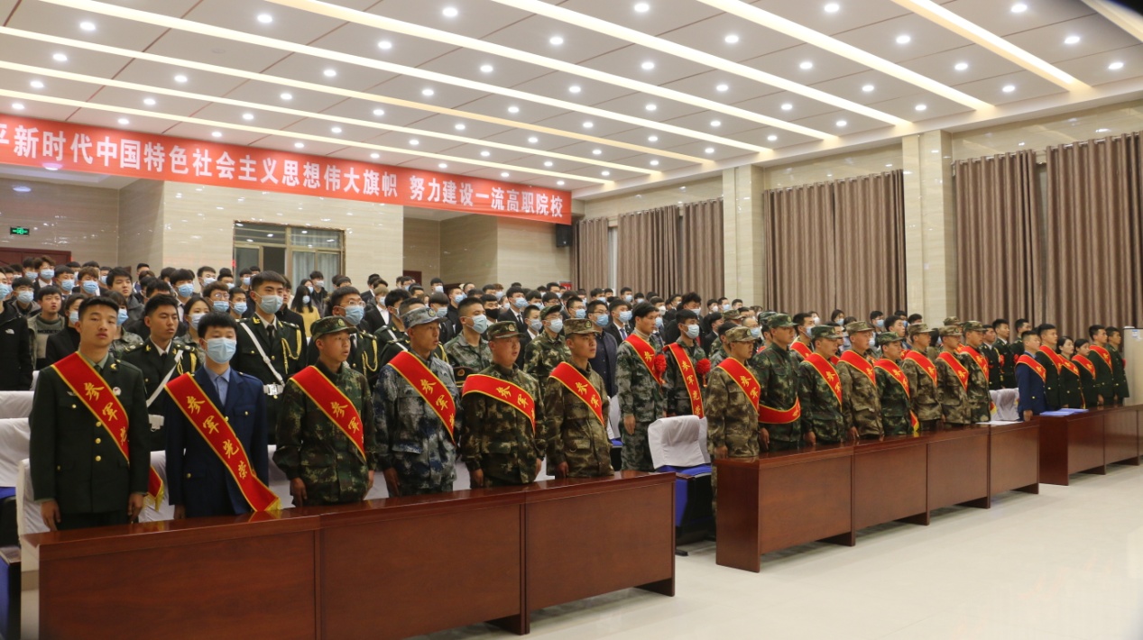2021年春季入伍學(xué)生、近兩年退役復(fù)學(xué)學(xué)生、新兵家長、學(xué)院征兵工作人員和師生代表共200余人參加了大會。