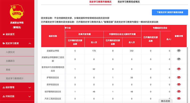 通過智慧團(tuán)建黨史學(xué)習(xí)教育專區(qū),可以更好的實(shí)現(xiàn)對團(tuán)組織、團(tuán)干部、團(tuán)員黨史學(xué)習(xí)教育情況的動態(tài)采集,構(gòu)建全團(tuán)大數(shù)據(jù)統(tǒng)計(jì),及時(shí)掌握各級團(tuán)組織和團(tuán)員學(xué)習(xí)教育整體進(jìn)度,有針對性地做好監(jiān)督,實(shí)現(xiàn)對團(tuán)員團(tuán)干部的網(wǎng)絡(luò)化黨史學(xué)習(xí)指導(dǎo)管理,實(shí)時(shí)掌握團(tuán)員需求,創(chuàng)新活動載體,切實(shí)推動我院共青團(tuán)黨史學(xué)習(xí)教育活動扎實(shí)開展。