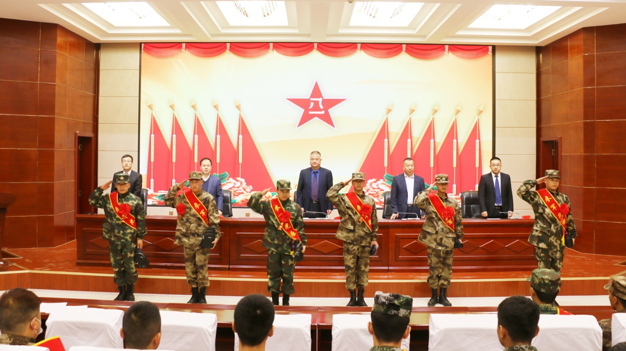 大會上,高鵬堂宣讀了2021年春季入伍學生名單和近兩年退役復學學生名單;參會領導為應征入伍的12名新兵佩戴紅花,贈送紀念品,為退役復學學生代表佩戴紅花,頒發(fā)榮譽證書。