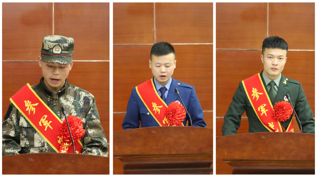 機械制造系學生張進和電子信息工程系學生藺煜明分別代表2019年、2020年退役復學學生發(fā)言,他們講述了自己的從軍經歷和退伍感想,表達了“退役不退志、退伍不褪色”的學習生活態(tài)度,并向新入伍的同學們送去了真誠的祝福。