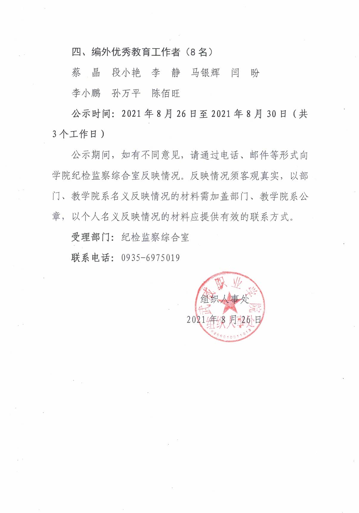關(guān)于對2021年甘肅省“園丁獎”、武威市教育工作先進(jìn)個人評選對象推薦結(jié)果…