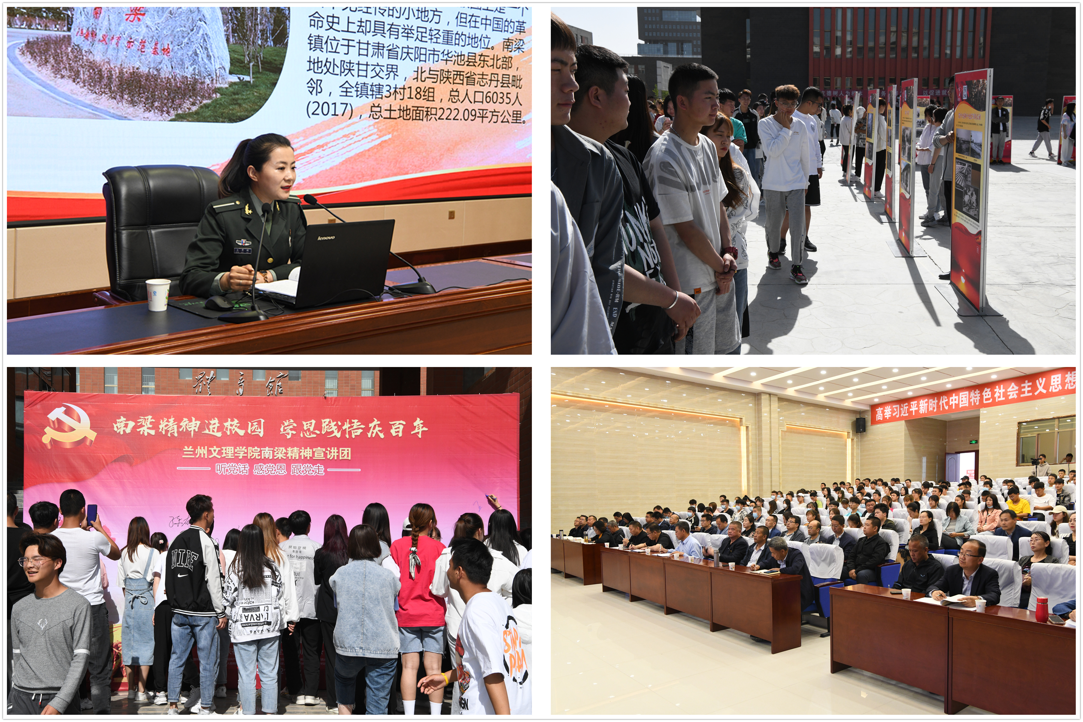 與此同時(shí),“講好南梁故事·永遠(yuǎn)跟黨走”主題展覽在大學(xué)生活動(dòng)中心前廣場(chǎng)開展,師生聆聽了南梁革命紀(jì)念館講解員的生動(dòng)講解,全面了解了劉志丹、謝子長(zhǎng)、習(xí)仲勛等老一輩無產(chǎn)階級(jí)革命家在陜甘地區(qū)高舉旗幟,創(chuàng)建以南梁為中心的陜甘革命根據(jù)地,積極探索救國(guó)救民的道路的光輝事跡和偉大精神。師生們紛紛表示要以革命先烈為榜樣,不忘初心,牢記使命,學(xué)習(xí)傳承老一輩無產(chǎn)階級(jí)革命家的革命精神,爭(zhēng)做傳承和弘揚(yáng)南梁精神的踐行者。