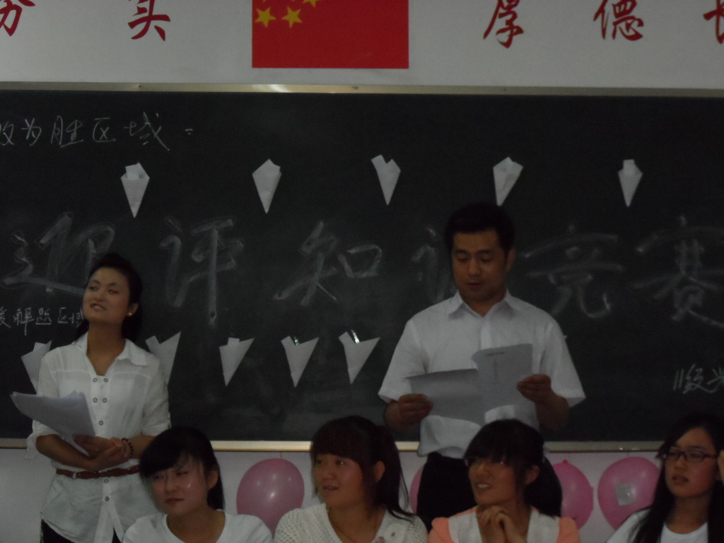 比賽開(kāi)始前顏老師對(duì)本次評(píng)估工作向同學(xué)們提出了要求,同時(shí)表示了對(duì)此次競(jìng)賽的充分肯定。比賽以“校園評(píng)估知識(shí)”為主題,共分為五個(gè)環(huán)節(jié)。當(dāng)主持人宣布第一環(huán)節(jié)“必答題”的比賽開(kāi)始后,場(chǎng)上緊張激烈的較量便從未停止過(guò),各位選手更是思維敏捷,回答嚴(yán)絲合縫。第二環(huán)節(jié)“是非題”各參賽隊(duì)緊追不舍,陣陣掌聲過(guò)后,迎來(lái)了第三環(huán)節(jié)“搶答題”的比賽,選手們以平時(shí)積累的大量知識(shí)和默契的配合征服了在場(chǎng)的所有人。在后兩個(gè)環(huán)節(jié)“風(fēng)險(xiǎn)題”,和“選答題”中,有趣的知識(shí),嚴(yán)密的思維被同學(xué)們展現(xiàn)的淋漓盡致,陣陣掌聲在教室經(jīng)久不息。