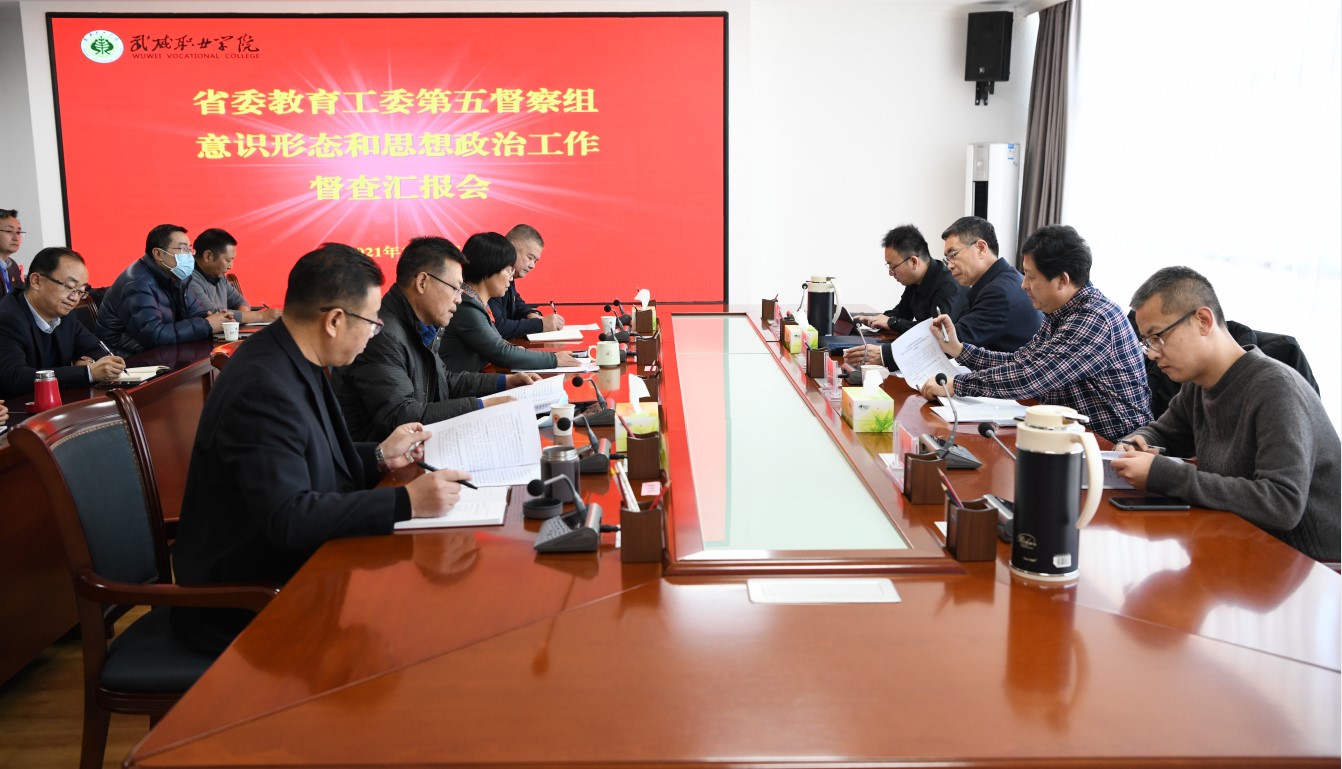 12月9日下午,由蘭州城市學(xué)院黨委委員、宣傳部部長,副校長、檢查組組長李慕堂,甘肅農(nóng)業(yè)職業(yè)技術(shù)學(xué)院宣傳部部長、馬克思主義學(xué)院院長張勝聞、蘭州信息科技學(xué)院黨委宣傳部部長焦磊、蘭州城市學(xué)院黨委宣傳部宋福組成的省委教育工委第五檢查組來我院督查指導(dǎo)學(xué)院思想政治工作開展情況。黨委委員、副院長王永緒、何毅,紀(jì)委書記、監(jiān)察專員陳曉煜,黨委委員、副院長王守云陪同檢查。