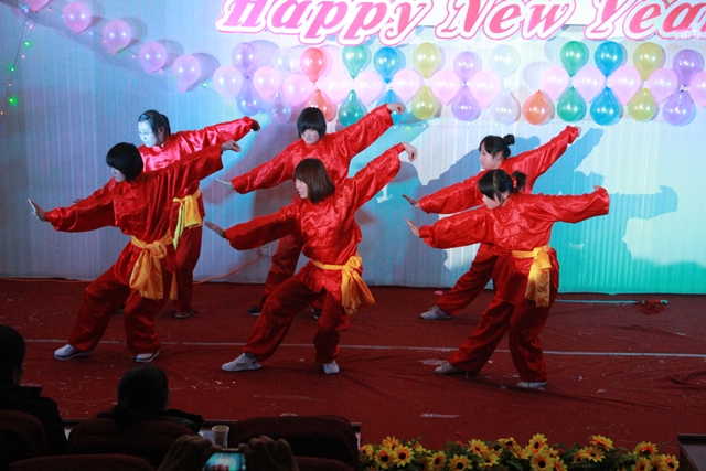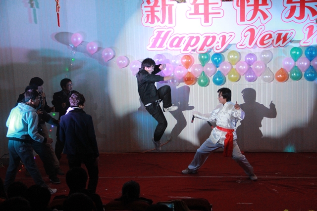 我系趙磊老師的薩克斯獨奏節(jié)奏明朗,富有磁力,優(yōu)美的旋律深深地吸引了全體觀眾。12級光熱班的張新輝,張一凡等同學(xué)反串《甄嬛傳》令現(xiàn)場的觀眾捧腹大笑。一首《祝?!返睦收b牽掛了所有觀眾,武術(shù)《中國功夫》令得全場驚呼,舞蹈《江南style》的精彩演出吸引了所有人的眼球。最后晚會在《同一首歌》的大合唱中緩緩落幕。